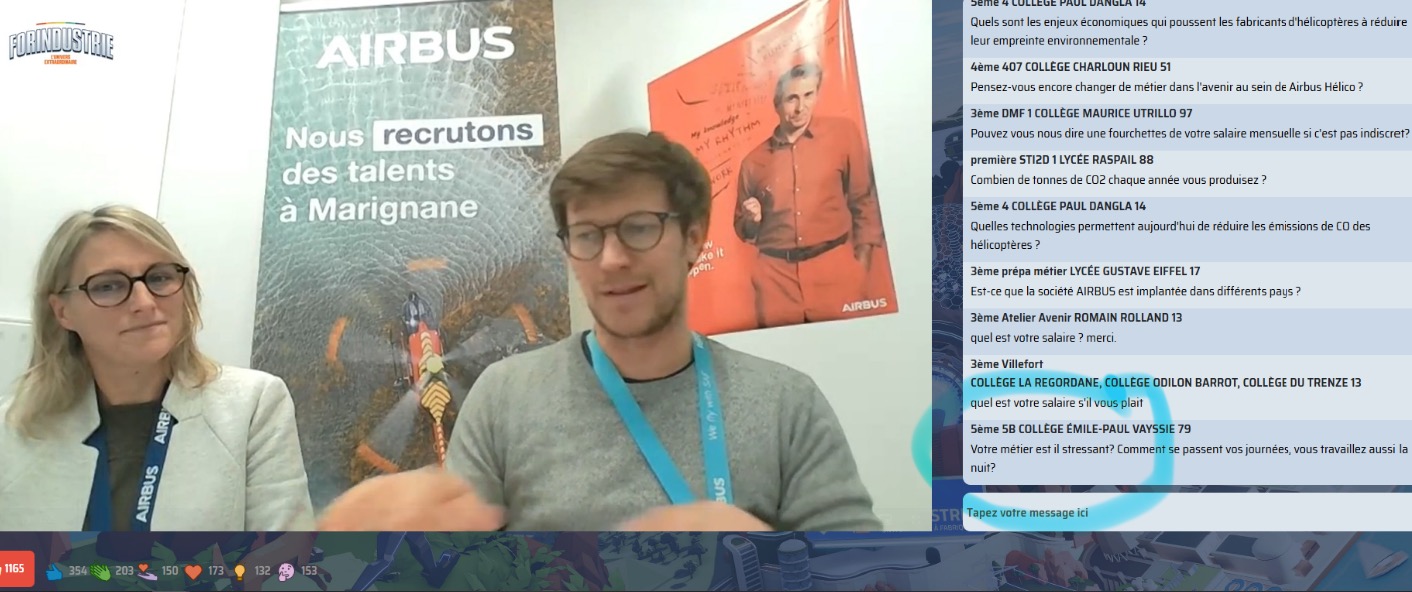 Ils visionnent de courtes vidéos, répondent à des quizz, participent en temps réels à des rencontres avec des professionnels. Impliqués la semaine dernière, les 5èmes ont ainsi pu poser des questions pertinentes auxquelles les professionnels ont répondu!